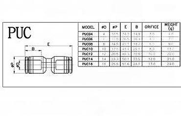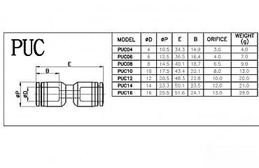 PUC pneumatска спојница – прави конектор за црево - Тип