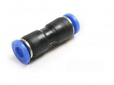 - Намена: повезивање два дела полиуретанских/најлонских пнеуматских црева једнаког пречника; погодна за ваздух у аутоматизацији, компресорске линије, пнеуматске алате и индустријске системе