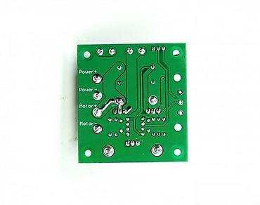 - Stezaljke za jednostavno povezivanje: Power +/-, Motor +/-. Obeležene na poleđini PCB-a.