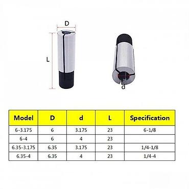 - D 6 mm → d 3,175 mm (6 – 1/8”)