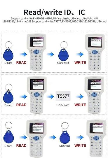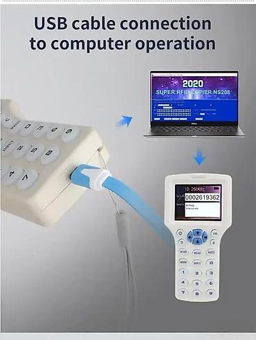 Višenamenski ručni uređaj za čitanje, kopiranje i upisivanje podataka na ID i IC kartice, priveske i tagove. Podržava rad sa više tipova kartica i frekvencija, uz mogućnost rada samostalno ili povezivanjem na računar preko USB kabla.