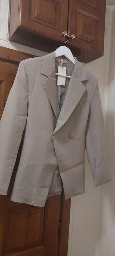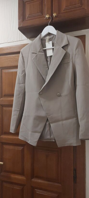 Komplet od četiri ženska gornja komada, svi veličina S, sa prikazanim brendovima i cenama: - Mohito sako-jakna od velura, bež nijansa. Široki reveri, asimetrično preklapanje, ukrasni epolete na ra...