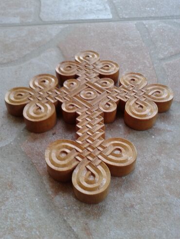 Ručno rezbarena viseća kandila od drveta sa staklenom čašicom + dekorativni zidni tanjir sa ikonografskim motivom. - Materijal: puno drvo, ručna rezbarija; gornji uložak od crvenog stakla. - Dizaj...10 RSD