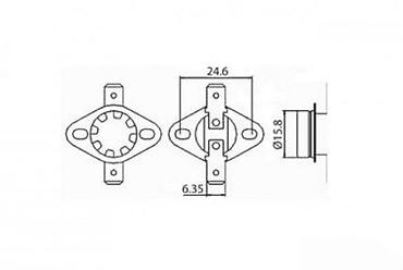 Primena: zaštita od pregrevanja i kontrola temperature u grejačima, aparatima za domaćinstvo, napajanjima, rasveti, motorima i drugim električnim uređajima. Brz odziv, pouzdan kontakt i jednostavna ugradnja.