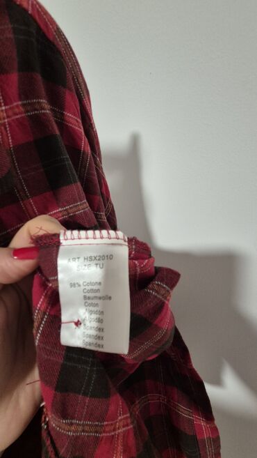 - Dizajn: crveno‑crna karirana šara, klasičan okovratnik, dugmad duž cele prednje strane, dugi rukavi