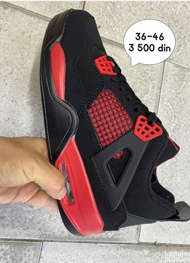 O trošku kupcaUnisex patike dostupne u različitim bojama, uključujući potpuno crnu, crnu sa crvenim detaljima, belu sa sivim i crnim detaljima i sivu sa crnim i belim detaljima. Patike imaju prepoznatljiv dizajn sa mrežastim panelima za prozračnost i karakterističnim bočnim krilima za podršku. Đon je opremljen vidljivim vazdušnim jastukom za udobnost i amortizaciju. Idealne su za svakodnevno nošenje i sportske aktivnosti, nudeći spoj stila i funkcionalnosti.AIR NIKE JORDAN
