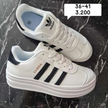 - Dizajn: klasične tri pruge sa bočnim natpisom “SAMBA”, logotip na jeziku