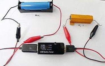 - Povezivanje baterije 18650 (preko držača) sa USB testerom/opterećenjem