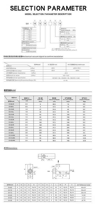 - Preporučeni radni opseg napajanja vazduhom: do 0,5 MPa (određeni RH modeli 0,35 MPa).