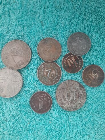 - Kovanice: više komada jugoslovenskih dinara različitih apoena (1, 2, 5, 10, 50), kao i nemačka kovanica (Bundesrepublik Deutschland). Na fotografijama su vidljive godine i nominale svakog primerka.