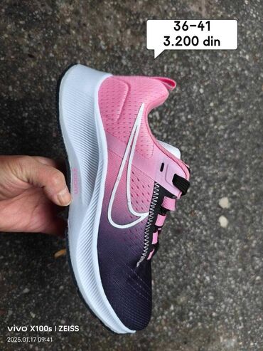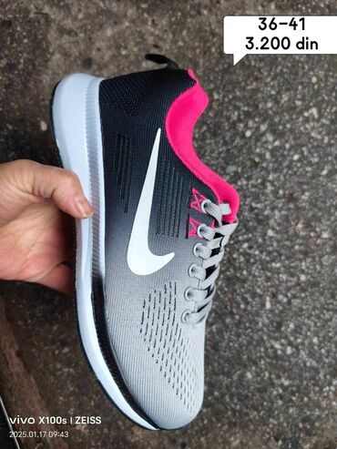 - Dizajn: gradijent boje (siva/ružičasta/crna varijanta), kontrastni detalji i prepoznatljiv beli “swoosh”