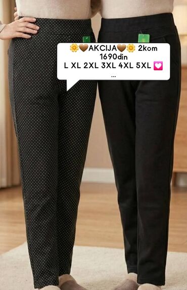 🌼🤎AKCIJA🤎🌼 2kom 1690din L XL 2XL 3XL 4XL 5XL 💟 Poliamid ☘️ tople pantalone – dva modela - Modeli: jednobojne crne i crne sa sitnim belim tufnama - Kroj: ravne nogavice, visoki elastični pojas bez ...