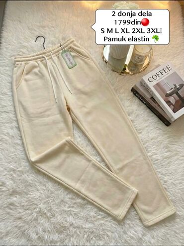2 Komada 2.000 Ženske trenerke/jogger pantalone – udobne i praktične za svaki dan. - Materijal: mekani pamučni duks (sa dodatkom elastina za rastegljivost). - Kroj: jogger sa elastičnim pojasom i ...
