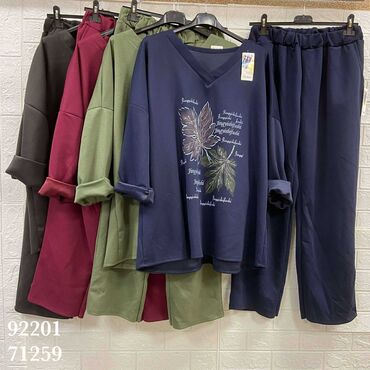 - Donji deo: ravne, široke pantalone punе dužine sa elastičnim pojasom za udobno pristajanje.