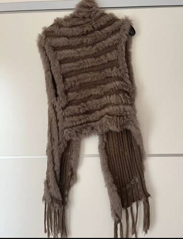Ženski prsluk/pončo od veštačkog krzna sa pletenim detaljima