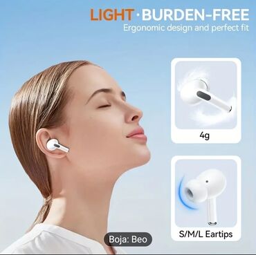 U kompletu: levi i desni earbud + kutija za punjenje (bela).