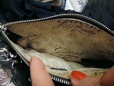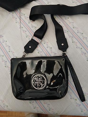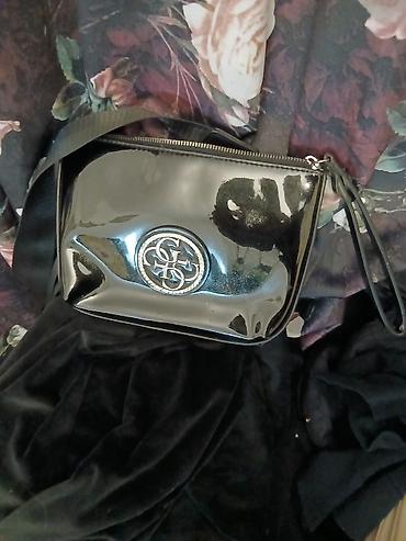 Crna sjajna torbica preko...... ramena sa logom G by Guess .na prednjoj strani. Materijal: lak koža/eko koža visokog sjaja... Glavni odeljak se zatvar.... metalnim rajsferšlusom. Unutra praktičan prostor za osnovne stvari (telefon, novčanik,.... ključevi) i manji džep. Spolja uklonjiva narukvica/remen za nošenje u ruci, kao i širok. podesivi kaiš za nošenje preko ramena ili koso preko tela. Metalni detalji u srebrnoj boji. Kompaktne dimenzije, idealna za svakodnevne izlaske i večernje kombinacije.