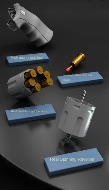 - Model sa rotirajućim bubnjem (real spinning revolver) i mehaničkim povezivanjem delova: okidač pokreće rotaciju i izbacivanje čaura.