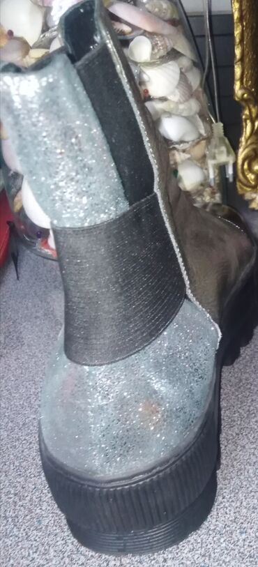 New Trend - Postavljene gležnjače od veštačkog materijala sa đonom koji se ne kliza. Možda jednom obuvene, kao nove. Br. 41. Unutrašnje gazište 27cm, visina pete je 5cm.