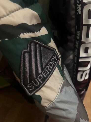 - Brend: Superdry (vezeni logo na rukavu, veliki Superdry natpis uz rajsferšlus)