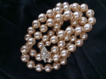 - Klasičan niz kremastih/biserno-bež kuglica ujednačenog prečnika