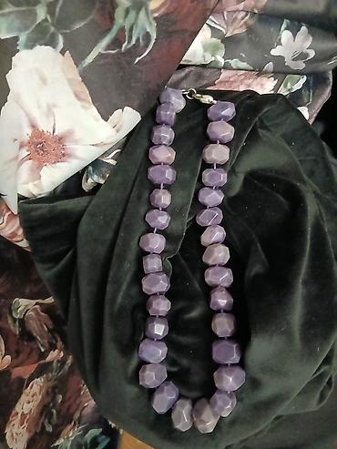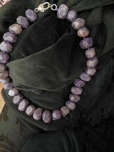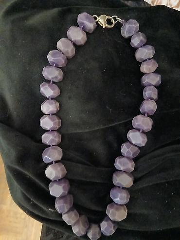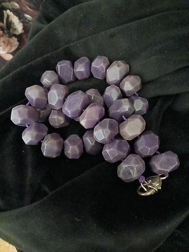 - Elegantna ogrlica sa većim, ručno facetiranim perlama u nijansama ljubičaste..