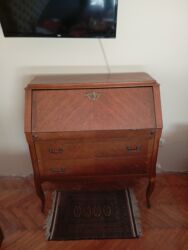 Beli konzolni/toaletni sto sa staklenom gornjom pločom i fiokom. -