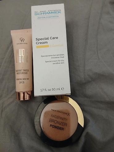 - Dr. med. Christine Schrammek derma.cosmetics – Special Care Cream (Essential), 50 ml, krema za suvu i osetljivu kožu. Na kutiji su navedeni sastojci i rok nakon otvaranja 12M. Namenjena smirivanju i hidrataciji osetljive, suve kože.