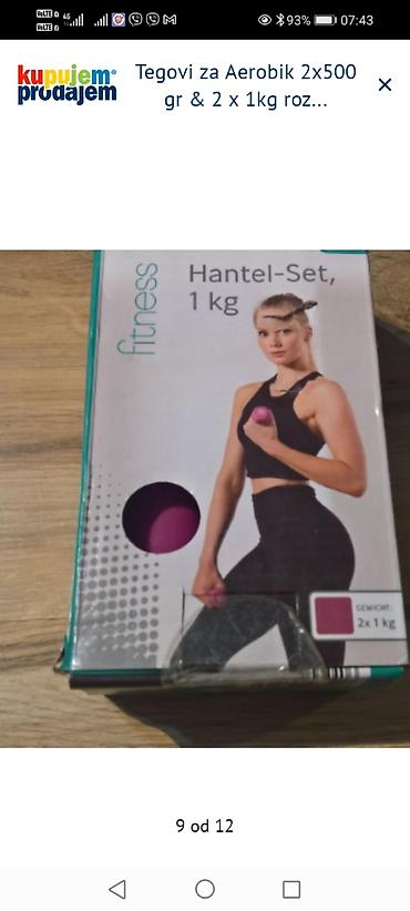 - Hantel set 1 kg: ručne hantle u rozoj boji, pakovanje označeno „Hantel-Set, 1 kg“, težina 2 x 1 kg. Idealne za vežbe ruku, ramena i rehabilitaciju, za kućni trening ili fitnes studio.