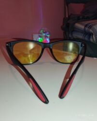 - Rama: mat crna wayfarer forma, sa crvenim akcentima na drškama i malim crvenim detaljima na prednjem delu