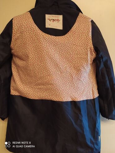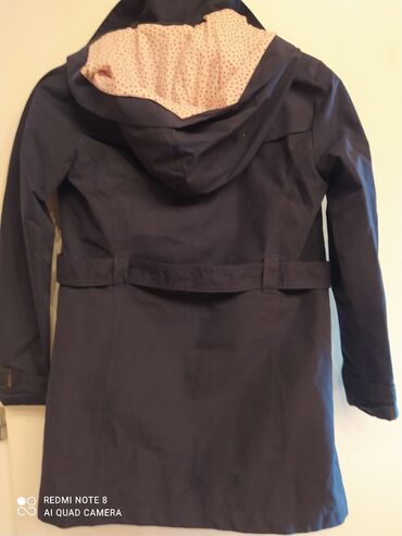 Waikiki mantilić teget i majica,mantilić ima duplo kopčanje ,kaiš i kapuljaču koja se skida,veličina 9-10 godina kao i majica ili 134 cm visine.Mantilić je par puta nošen