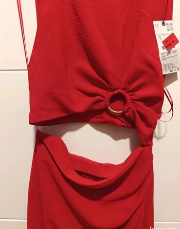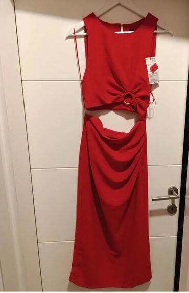 Zara crvena midi haljina sa izrezom u struku i dekorativnim metalnim prstenom