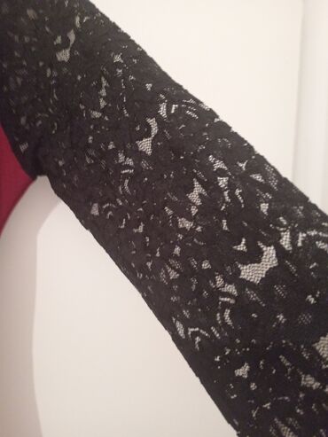 - Gornji deo i rukavi: crna providna čipka, rukavi 3/4 dužine