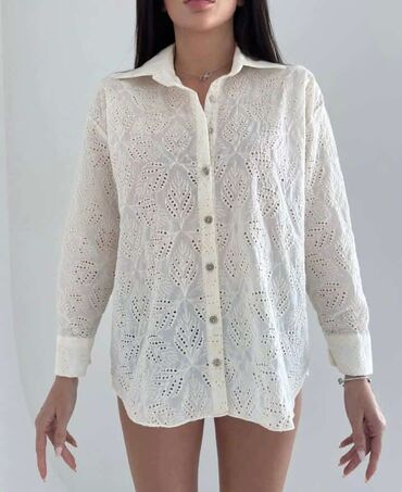 - Model 2: Košulja sa izrezbarenim (broderie anglaise) floralnim motivom