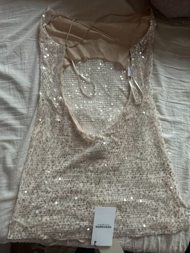 - Model: kratka suknja sa potpuno prekrivenom šljokičastom mrežom