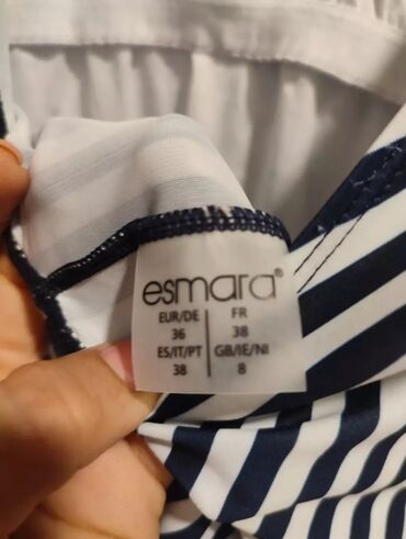 - Dizajn: pruge u tamnoplavoj i beloj boji, klasičan okrugli izrez napred i dublji izrez na leđima.
