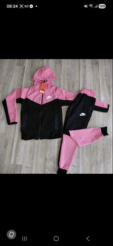 - Dvod elni sportski komplet: gornji deo sa kapuljačom i rajsferšlusom + donji deo sa elastikom u struku i učkurom