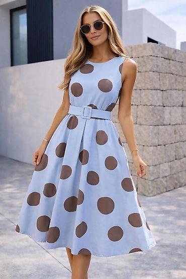 Bez rukava, zatvoreni okrugli izrez,midi dužina sa blagim naborima za lepršav efekat