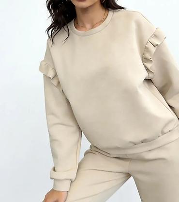 Komplet košulja + pantalone u bež/peščanoj nijansi. - Gornji deo: košulja sa klasičnim kragnom, dugmadima spreda i dva velika dekorativna džepa na grudima; rukavi sa mogućnošću podvijanja i kopčan...