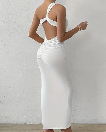 Haljina duga gola ledja,nabrana pozadi push up na jedno rame.Likra.