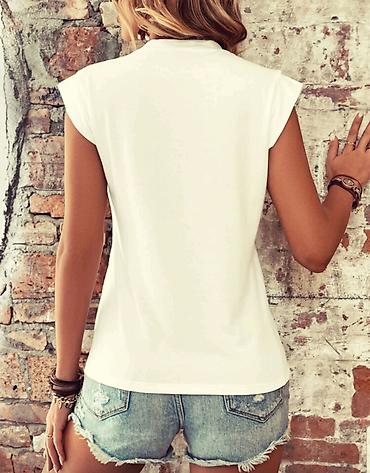 Ljubičasta ženska majica sa kratkim rukavima i V-izrezom. Ukrasna bela