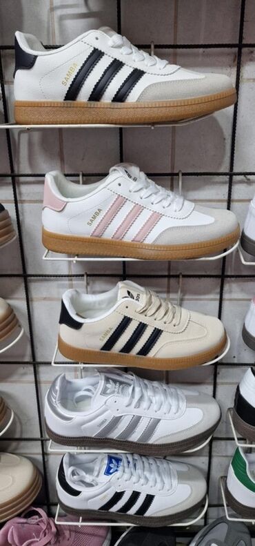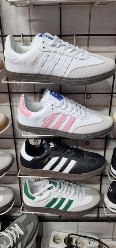 AntilopPatike sportskog dizajna, idealne za svakodnevno nošenje. Dostupne u više varijanti boja, uključujući belu sa crnim, roze, bež, ili sivim prugama, kao i crne sa belim prugama. Gornjište je od kombinacije sintetičkog materijala i antilopa, što obezbeđuje udobnost i izdržljivost. Karakteriše ih prepoznatljiv brending sa tri pruge i nazivom "SAMBA" sa strane. Gumeni đon pruža stabilnost i prijanjanje, čineći ih pogodnim za različite aktivnosti. Ove patike su klasičan izbor za opušten i sportski stil.