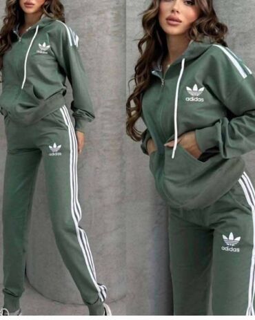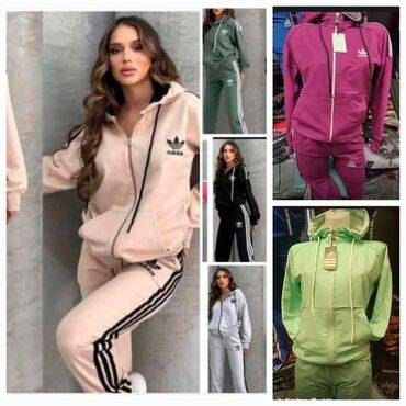 Ženska trenerka sa kapuljačom, pogodna za sport i slobodne aktivnosti. Gornji deo ima rajsferšlus, kapuljaču i klokan džepove. Donji deo ima elastičan pojas i bočne pruge duž nogavica. Trenerka je dostupna u različitim bojama: siva, bež, crna, zelena, ljubičasta i plava, što omogućava prilagođavanje različitim stilovima i prilikama.