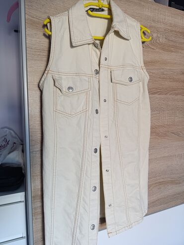 - Detalji: kontrastni šavovi u boji konjaka, duža dužina (može se nositi kao prsluk preko outfita ili kao haljina uz pojas)