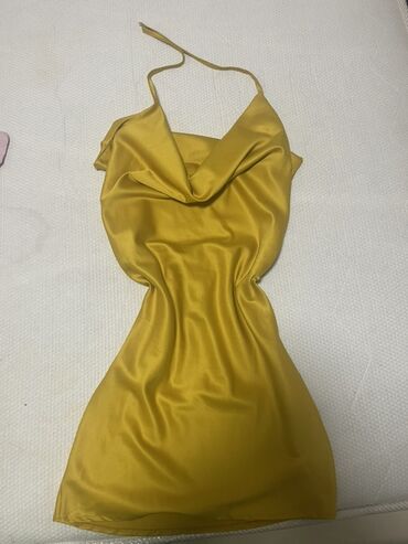 Žuta mini haljina sa puf kragnom, izrađena od glatkog, sjajnog materijala. Dizajn sa puf kragnom daje elegantan izgled, dok dužina haljine naglašava noge. Idealna za večernje izlaske, proslave ili koktel zabave, pružajući sofisticiran i upečatljiv stil.