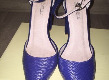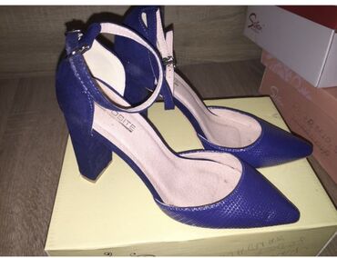 Elegantne ženske salonke Seastar - Model: klasične špicaste salonke - Boja: kombinacija crne i bordo/crvene (gradijent – crni prednji deo, bordo peta i zadnji deo) - Materijal: lakovana (sjajna) v...Plave velur sandale sa debljom stiklom, nosene jedanput samo