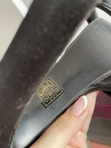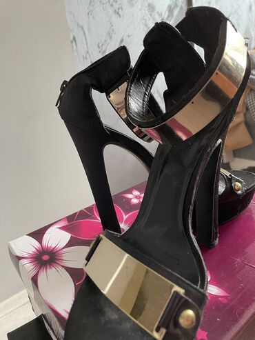 KaišSandale sa debljom stiklom 12cm, prevucene satenom sa zlatnom plocicom oko zgloba i napred, nosene dva puta samo