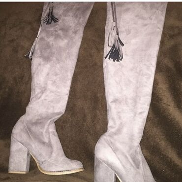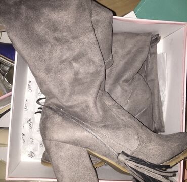 Prelazno vremeSive duboke velur cizme preko kolena, imaju mogucnost da se podesavaju da bude i kraci i duzi model cizme, par puta samo nosene..Velicina 38-39