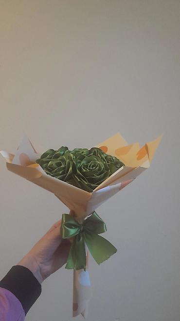 Ručni buket od satenskih ruža – zelena kolekcija - Buket sastavljen