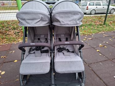 Duple sportske kolica Inglesina – siva, model za blizance ili dvoje dece jedno pored drugog.